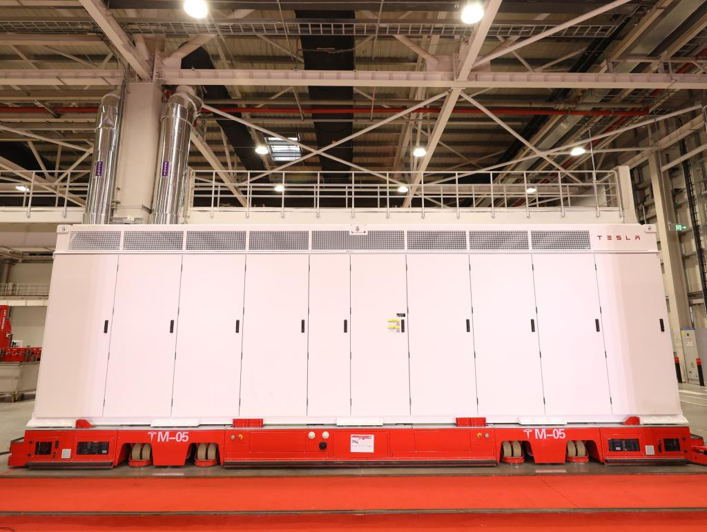 这是2月11日在特斯拉上海储能超级工厂投产仪式现场拍摄的超大型电化学商用储能系统。新华社记者 方喆 摄